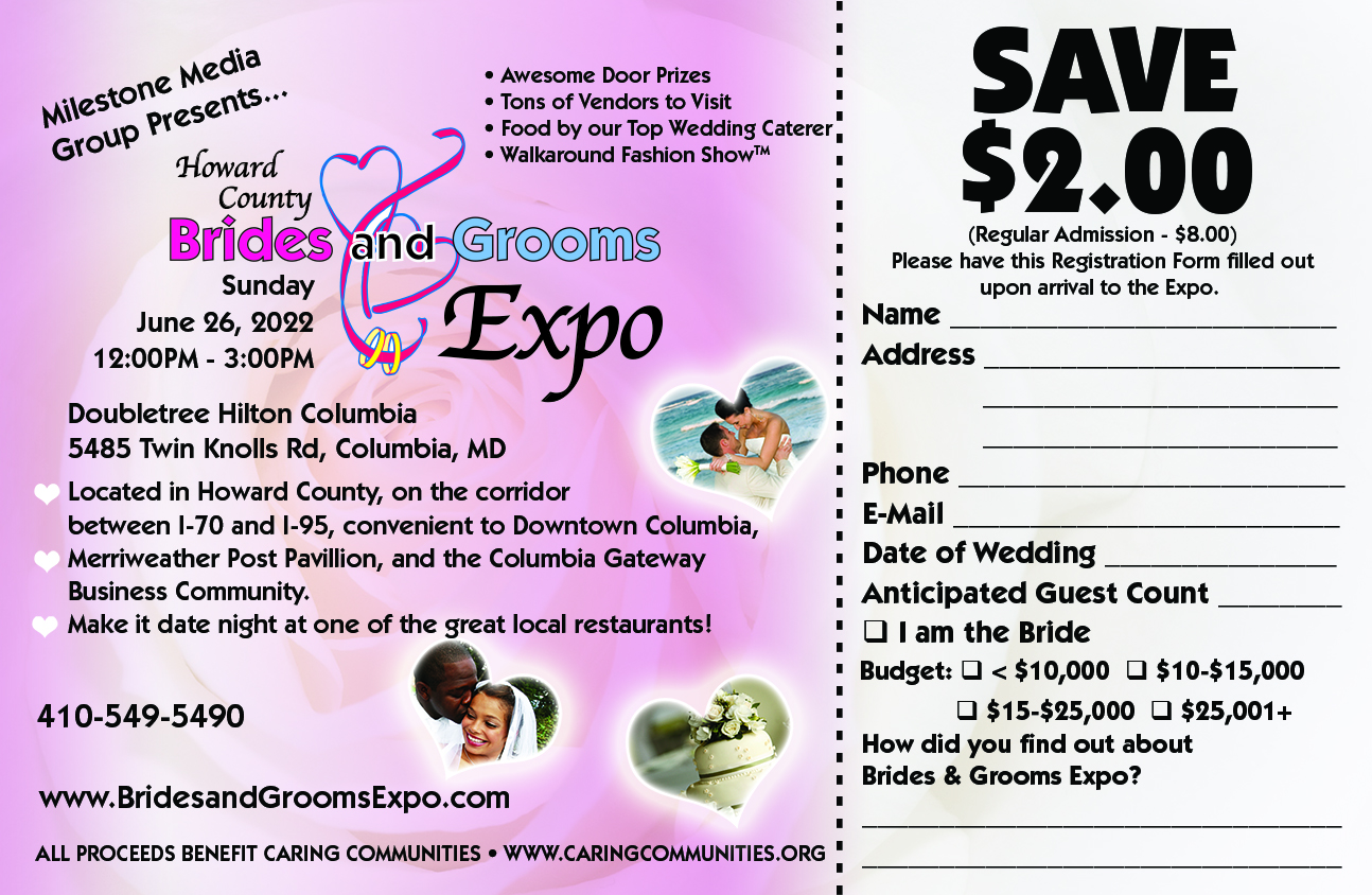 Save $2.00 per admission for the Howard County Brides and Grooms Expo 2022 on June 26, 2022 at DoubleTree by Hilton Columbia